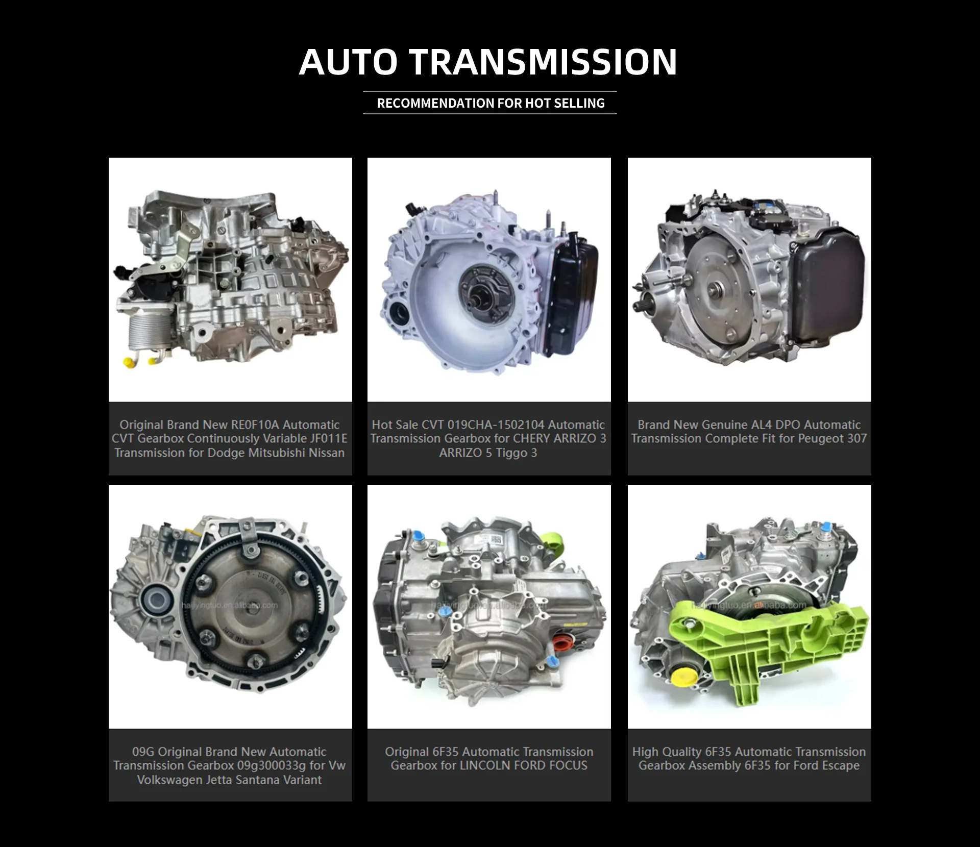 Founder of our company has more than 20 years of auto parts expe- rience so far,and our company exports products to all over the world, mainly to North America, South America, Europe, Russia, Asia, South Africa and etc. Advantages of the company: mature technology research and development team, mainly involved in auto engine, transmission parts of all kinds of products, a complete range, comp- lete organizational structure and business skilled technical team! Our main products: auto engines, auto gearboxes, transmission Control Modules, mechatronic units, solenoid valves, transmission valve bodies, clutch Kit assemblies, transmission rebuilt kits, tran- smission friction kits, transmission steel kits, chain belts, oil pumps and other hot and popular auto parts products, a complete range, reasonable prices, high-quality auto parts. Covering all series of models.